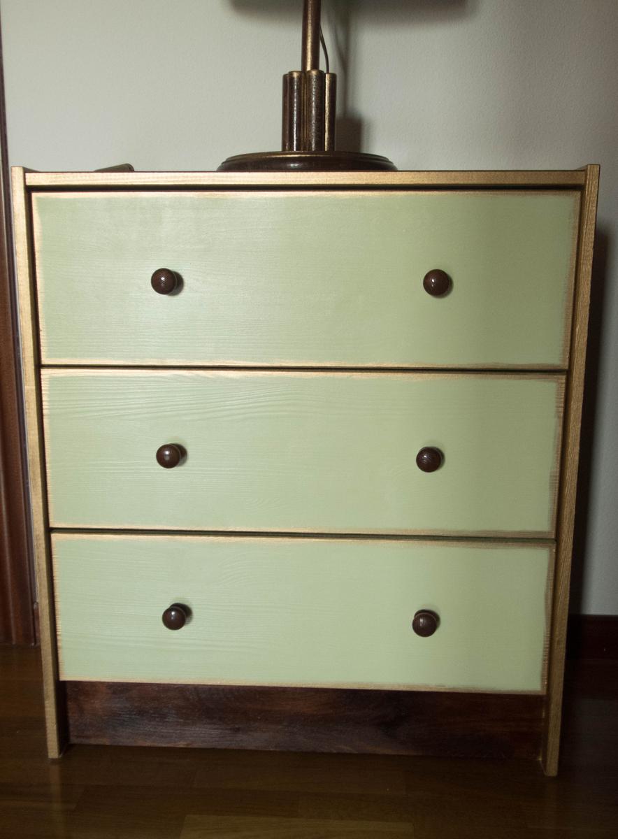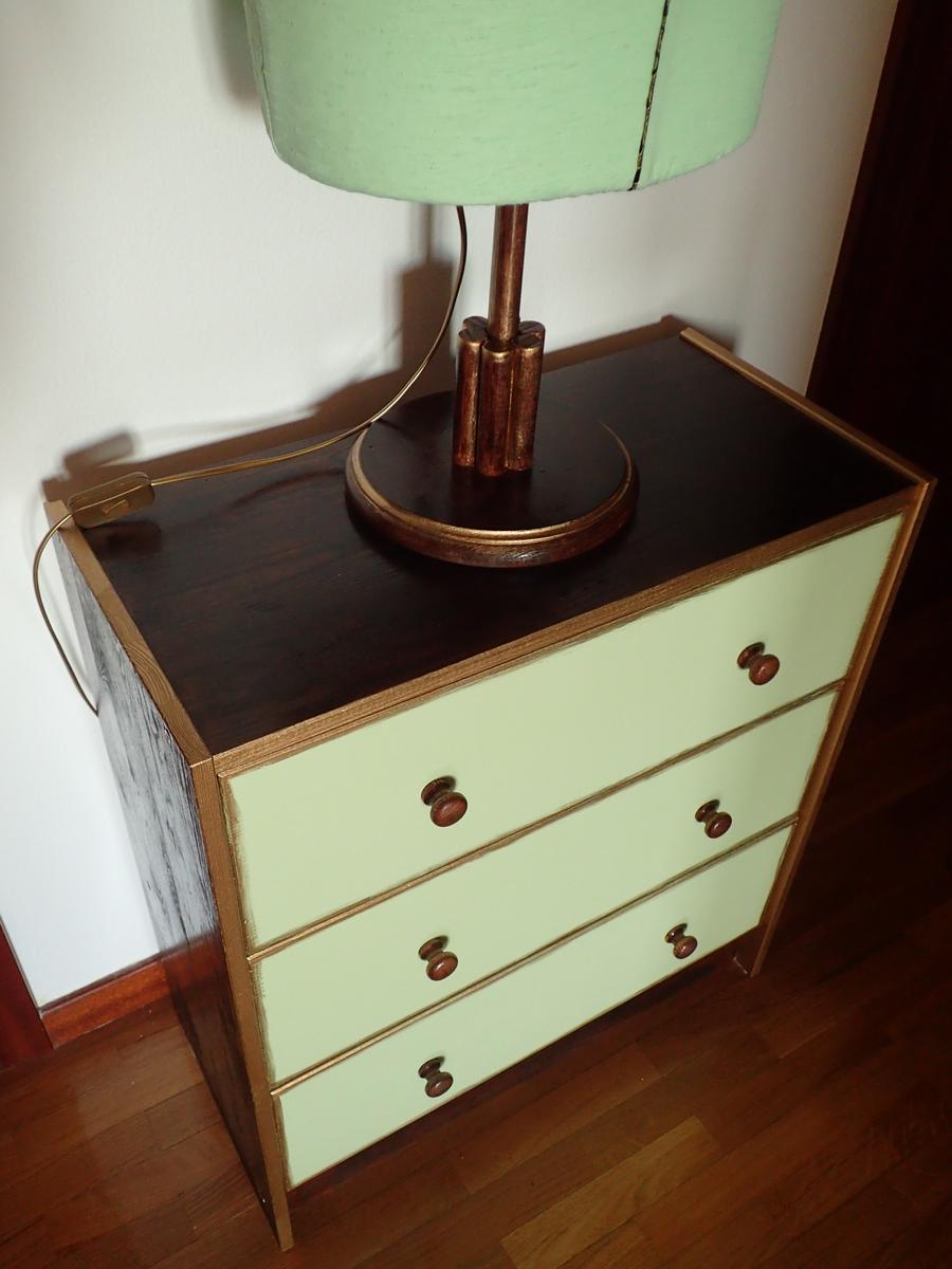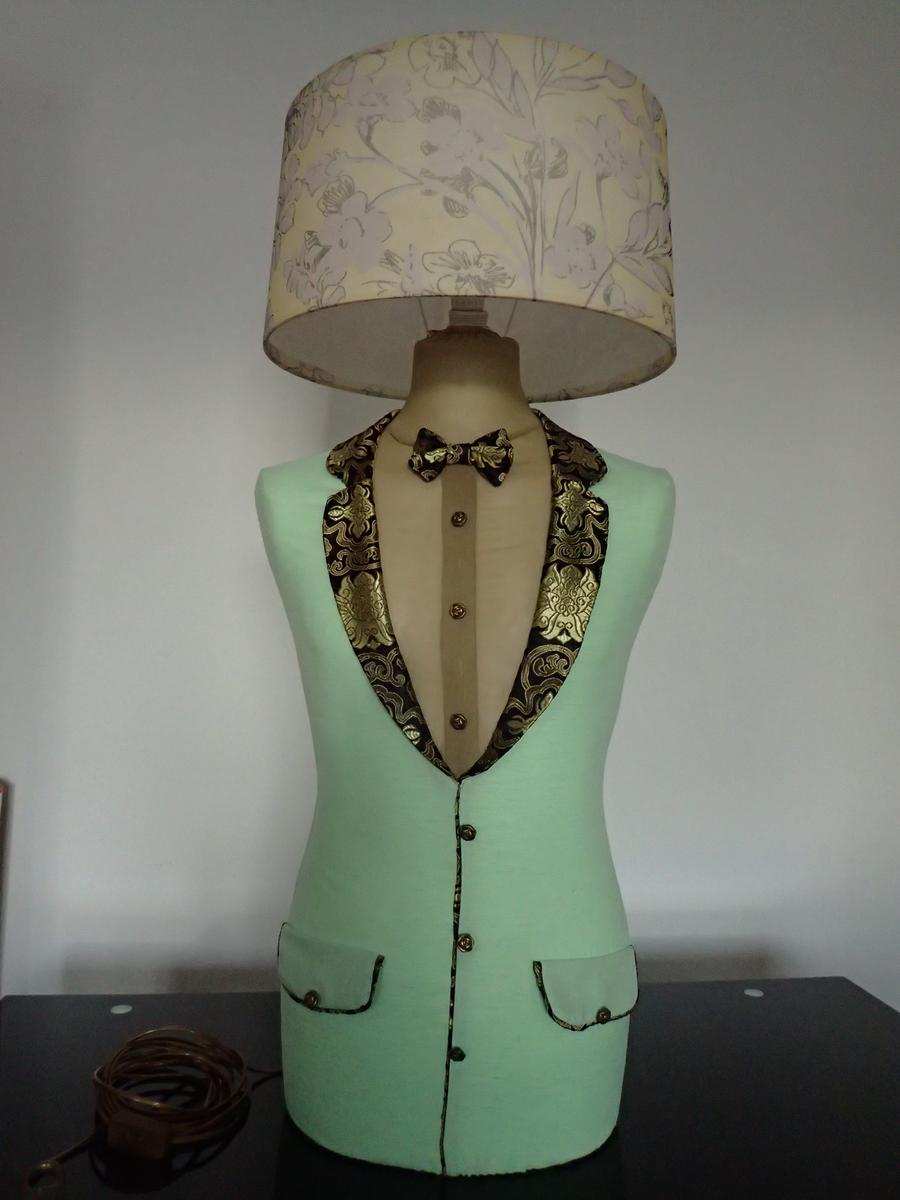Una vez terminado el soporte hay que pintarlo ya que la madera en todo momento estaba en estado bruto. Al tratarse de madera nueva no he usado imprimación pero podéis hacerlo si queréis . Los colores del mueble siguen la línea cromática de los tejidos usados en el maniquí: verde claro, marrón oscuro casi negro y dorado para los detalles. Espero que os guste el resultado!