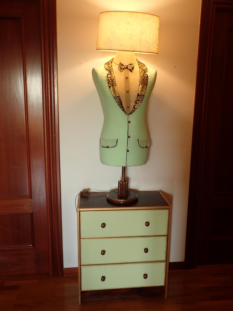 Lo normal es que el maniquí traiga un soporte metálico pero en este caso yo no lo tenía así que compre un mueble en Ikea de unas medidas adecuadas para él y con algo de ayuda fabriqué un soporte utilizando, además, un listón de madera redondo y una peana.