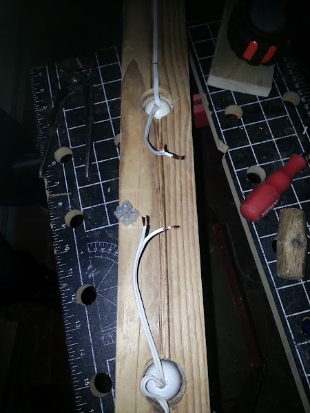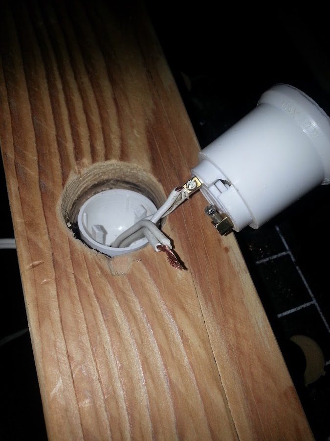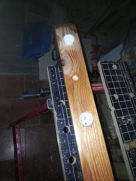 Los casquillo van justos metidos en la madera, pero les pongo silicona transparente para que queden pegados, y cuando cambiemos la bombilla no se muevan.