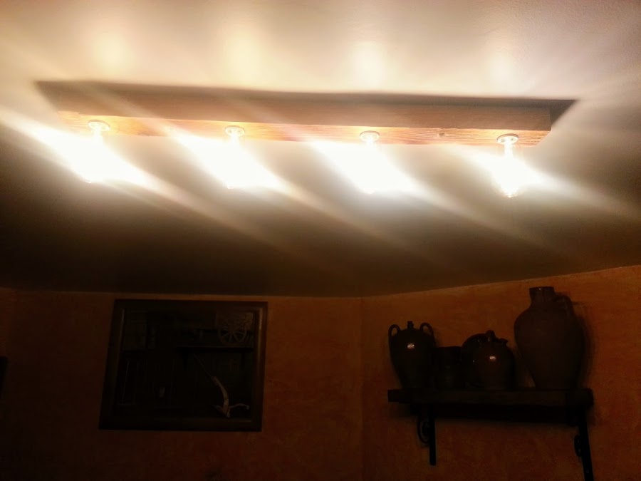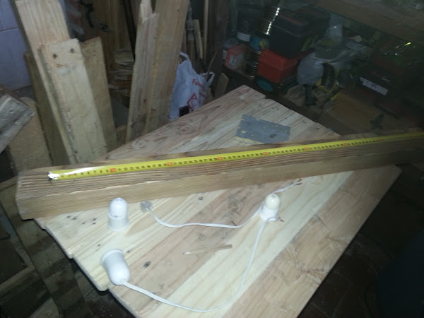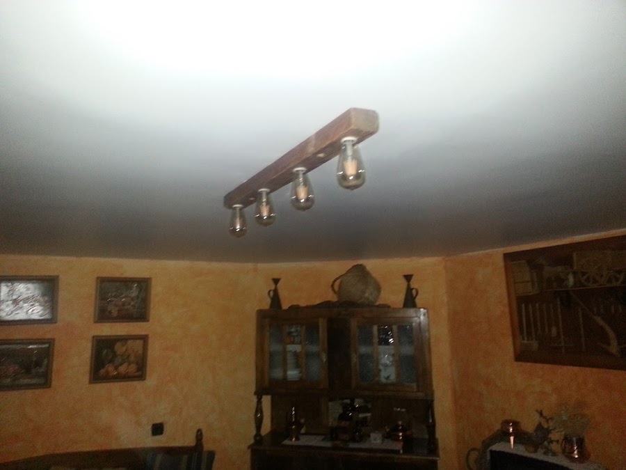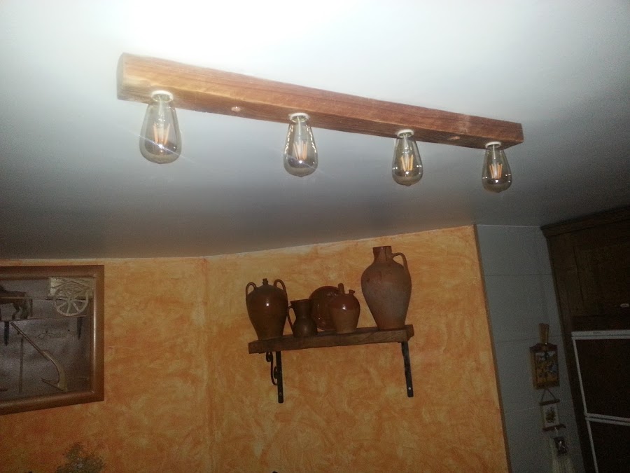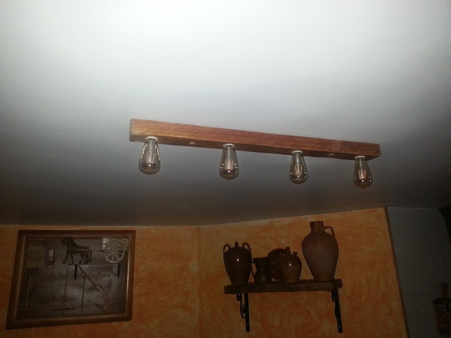La primera lámpara, es muy sencilla con un palo de un palet, cuatro casquillos y cuatro bombillas edinson pero de led. Saqué adelante una lampara, muy sencilla, pero a mi me gusta mucho.