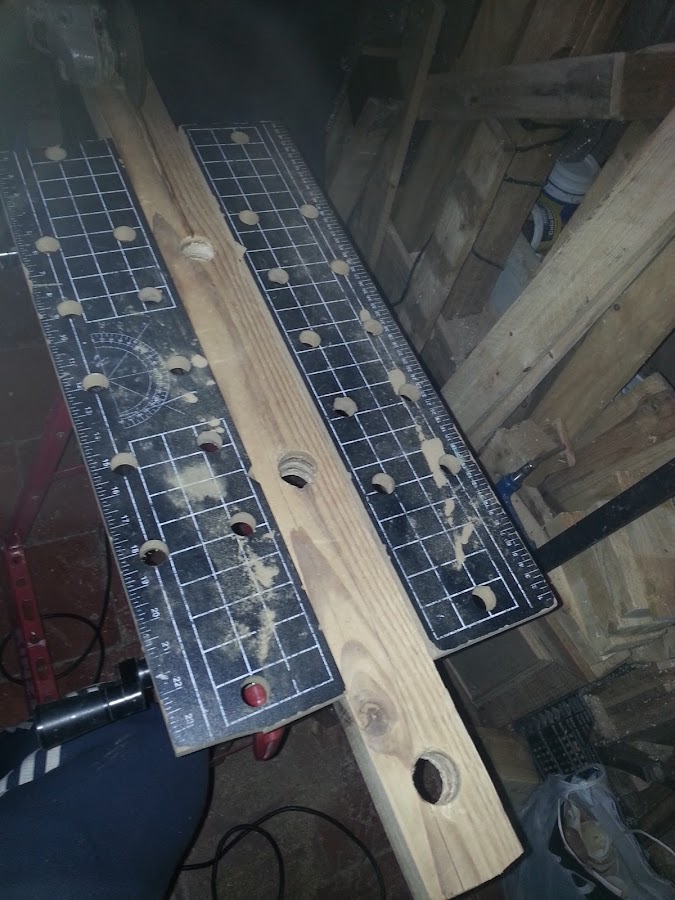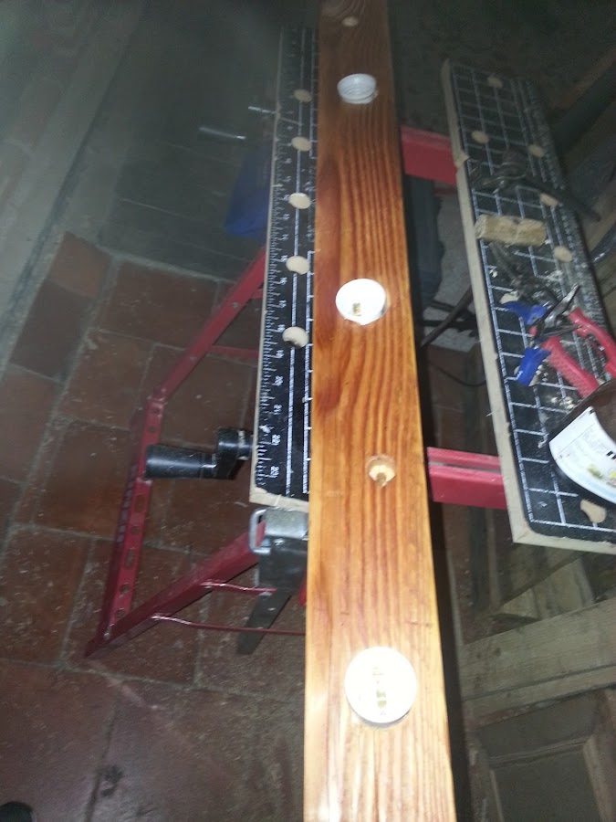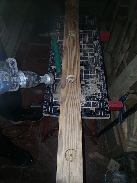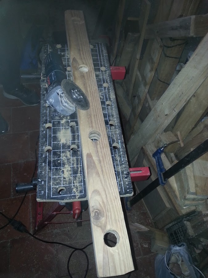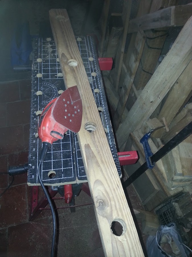 Siguiente paso, lijar bien toda la madera y el interior de los orificios hechos en la madera.