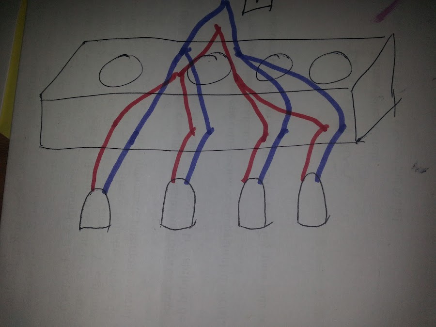 Foto donde se ve como en cada casquillo uno dos cables del anterior.