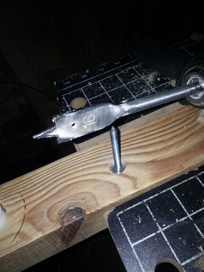 Lo ideal habría sido tener una broca de pala del diametro del casquillo, pero me apaño con lo que tengo,