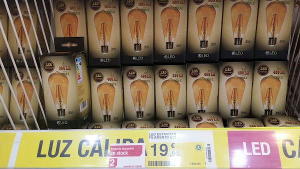 Estas bombilla están muy de moda, son muy caras, pero deben de durar mucho y gastan muy poquito. Las compré en el Leroy Merlin.