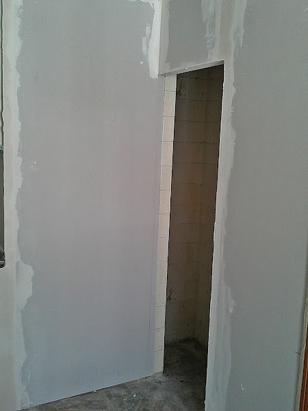 Aquí hicimos el hueco para la nevera, hay que pasar la rotor-vital aun a lo emplastecido para poder pintar luego.