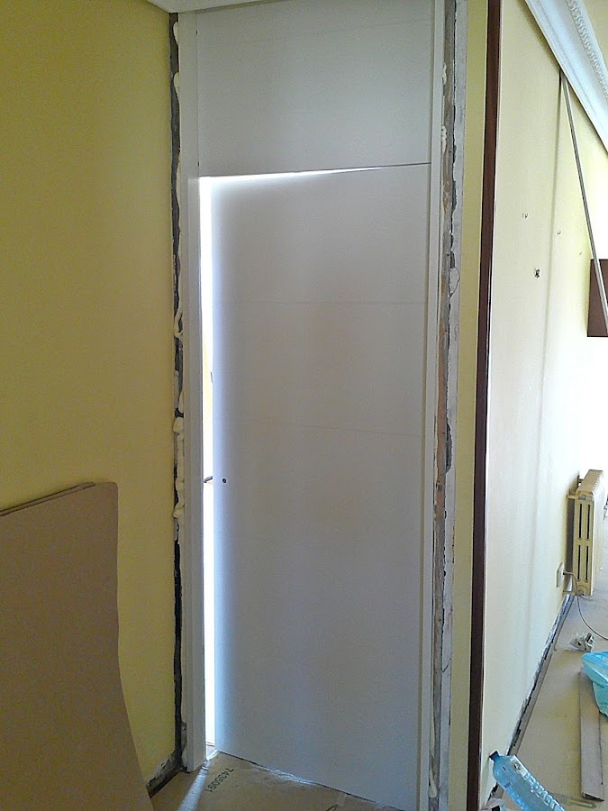 Bueno luego también fuimos a instalar puertas de paso, correderas, blindadas, todas con sus maineles, también hacer unas guías para un proyector de cine, todo con sus respectivas guarniciones, aunque en las fotos aun no estaban puestas.