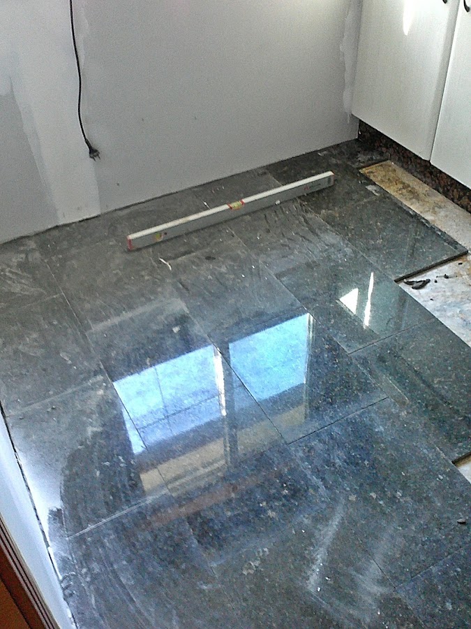 Y aquí la que quisieron que pusiéramos, ya esta toda acabada, con su rodapie, bien limpia y colocada toda a nivel etc.