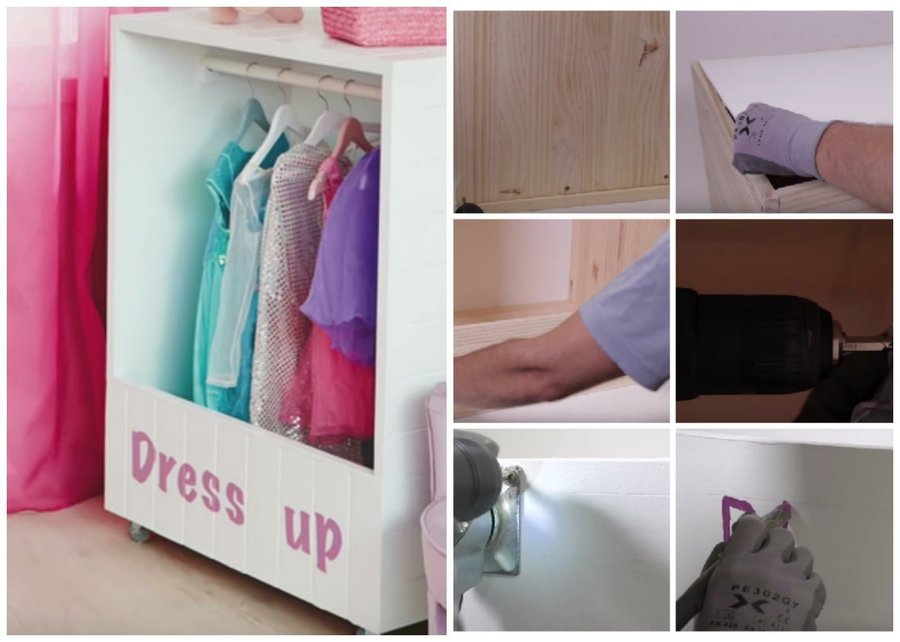 Es por eso que empezamos proponiéndoos un trabajo muy especial, que consiste en elaborar un pequeño ropero infantil. Se trata de un mini armario, situado a pequeña altura, que podrán utilizar en sus primeros años. En él podremos guardar las prendas de uso diario, acostumbrarle a que cuelgue la ropa cuando se la quite... Además, cuando crezca podremos emplear el ropero como espacio de almacenaje extra. De este modo, para elaborarlo seguiremos los siguientes pasos: