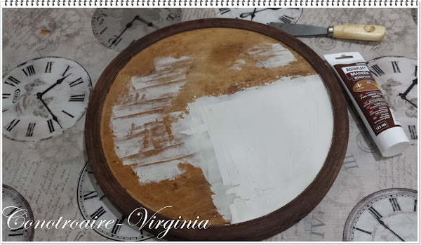 Una vez eliminado todo el barniz, me puse con las zonas estropeadas. La base de abajo tenia parte del chapado roto y podrido por la humedad. Con un cuter fui haciendo cortes y levantado los trocitos estropeados hasta dejar la zona limpia. Luego, rellene el hueco con pasta para madera para igualar toda la superficie.
