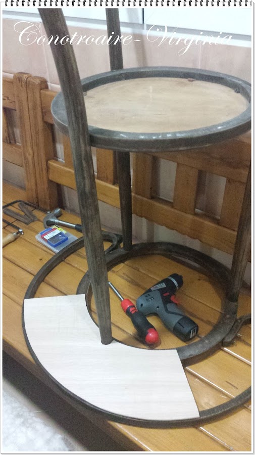 Lo primero que hice fue limpiarla y luego desmontarlo por completo. Empece a retirar todo el baniz que tenía raspando con una espátula, la verdad que salio con bastante facilidad.