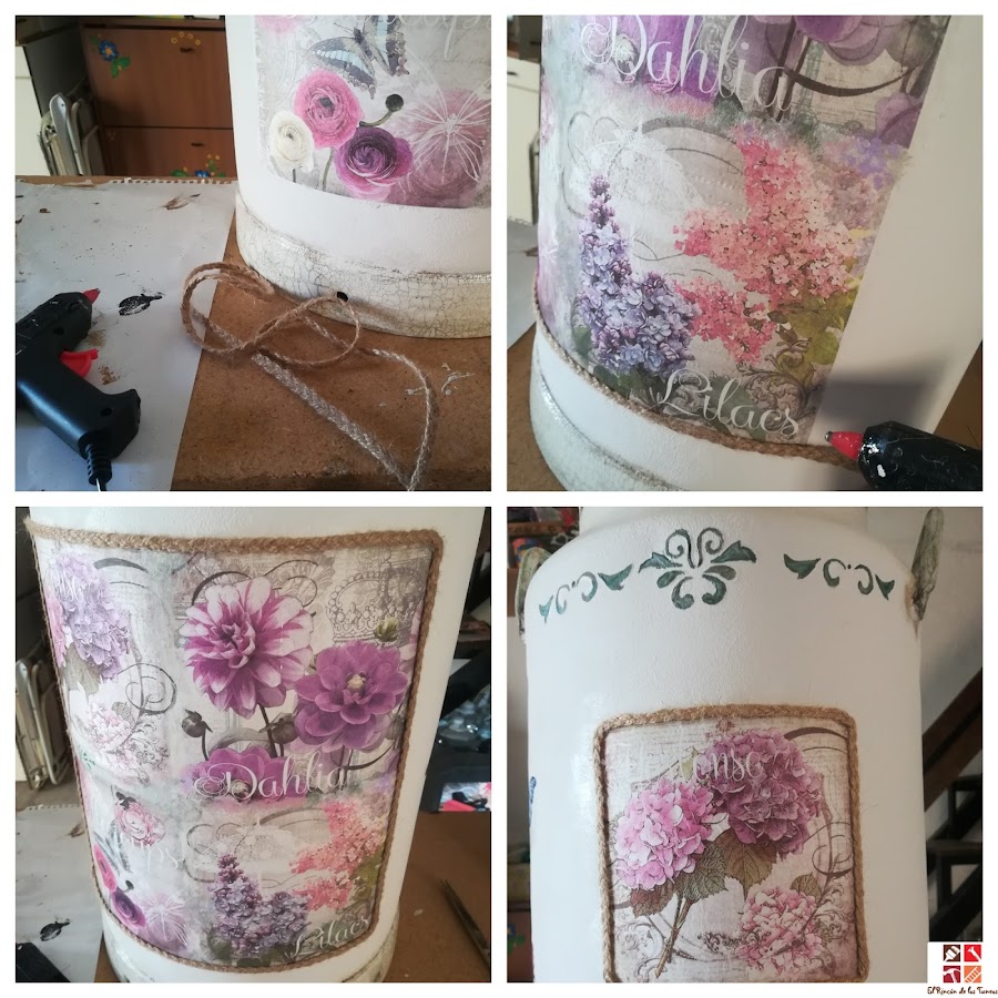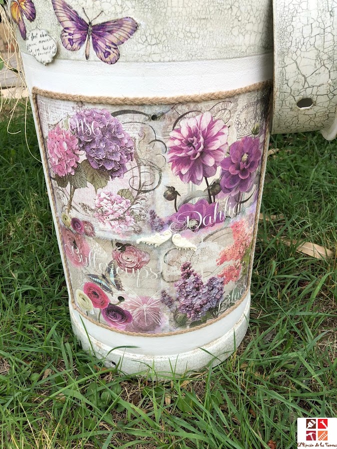 Le he puesto otros elementos decorativos para darle un toque más shabby chic.