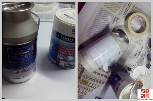 Primeramente y para tapar el dibujo de la marca de bombones puse cinta de carrocero y le dí dos manos de imprimación respetando el color plateado ya que se va a quedar así.