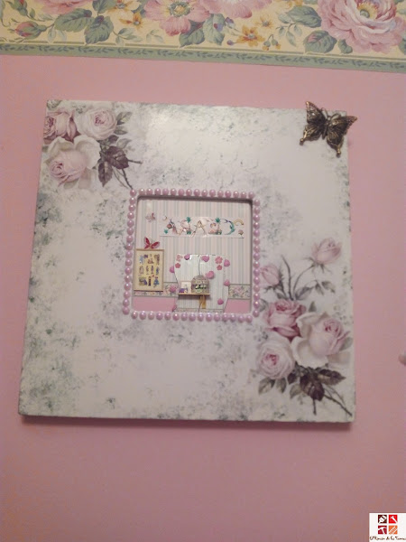 Y ahora viene la parte más divertida, decorarla, saqué varios adornos para combinar, no quería recargarla mucho pero sí darle ese toque romántico que tiene esta servilleta así que al final me decidí, he usado puntilla adhesiva de color blanco, unas perlas adhesivas en tono rosa alrededor y un ramito de flores en el mismo tono para dar un toque shabby chic.