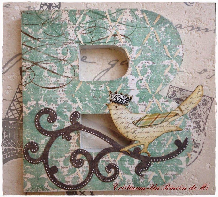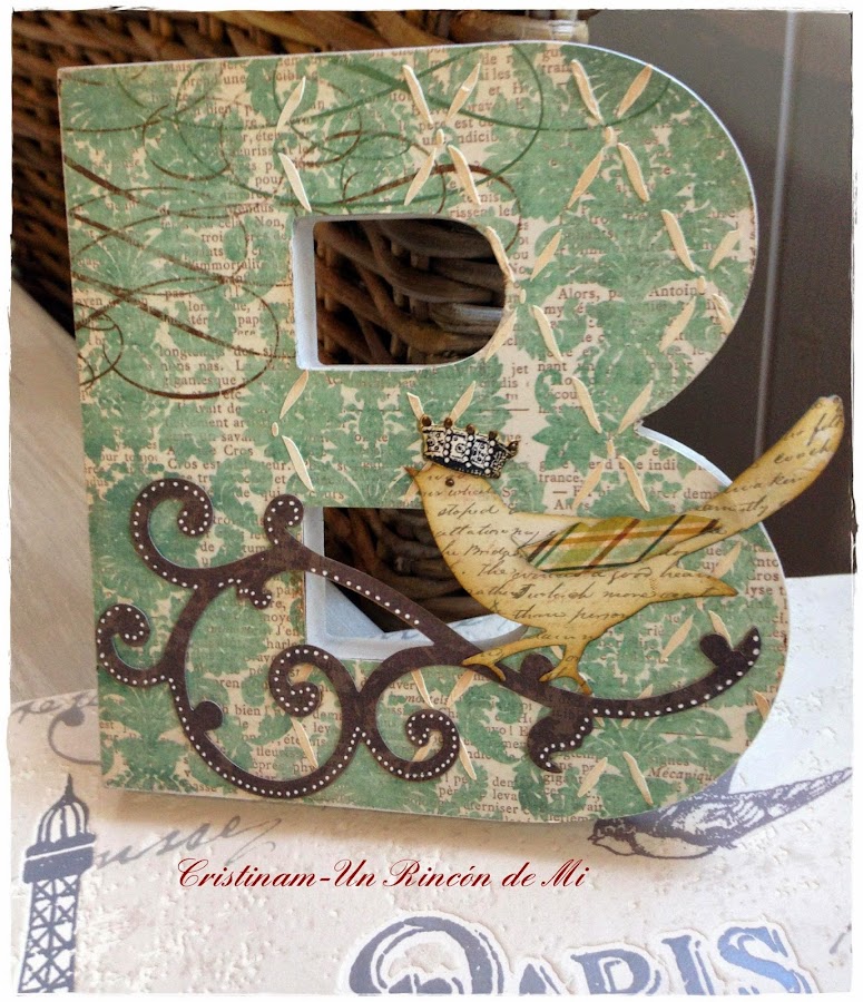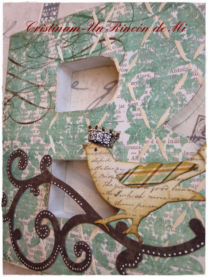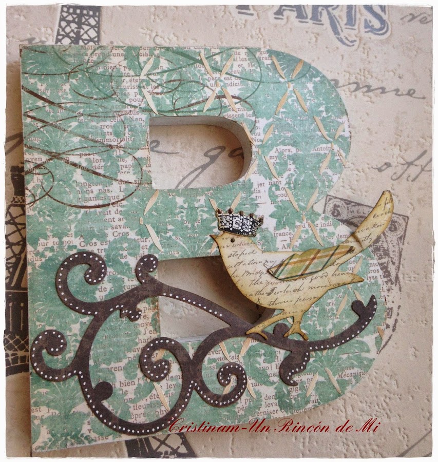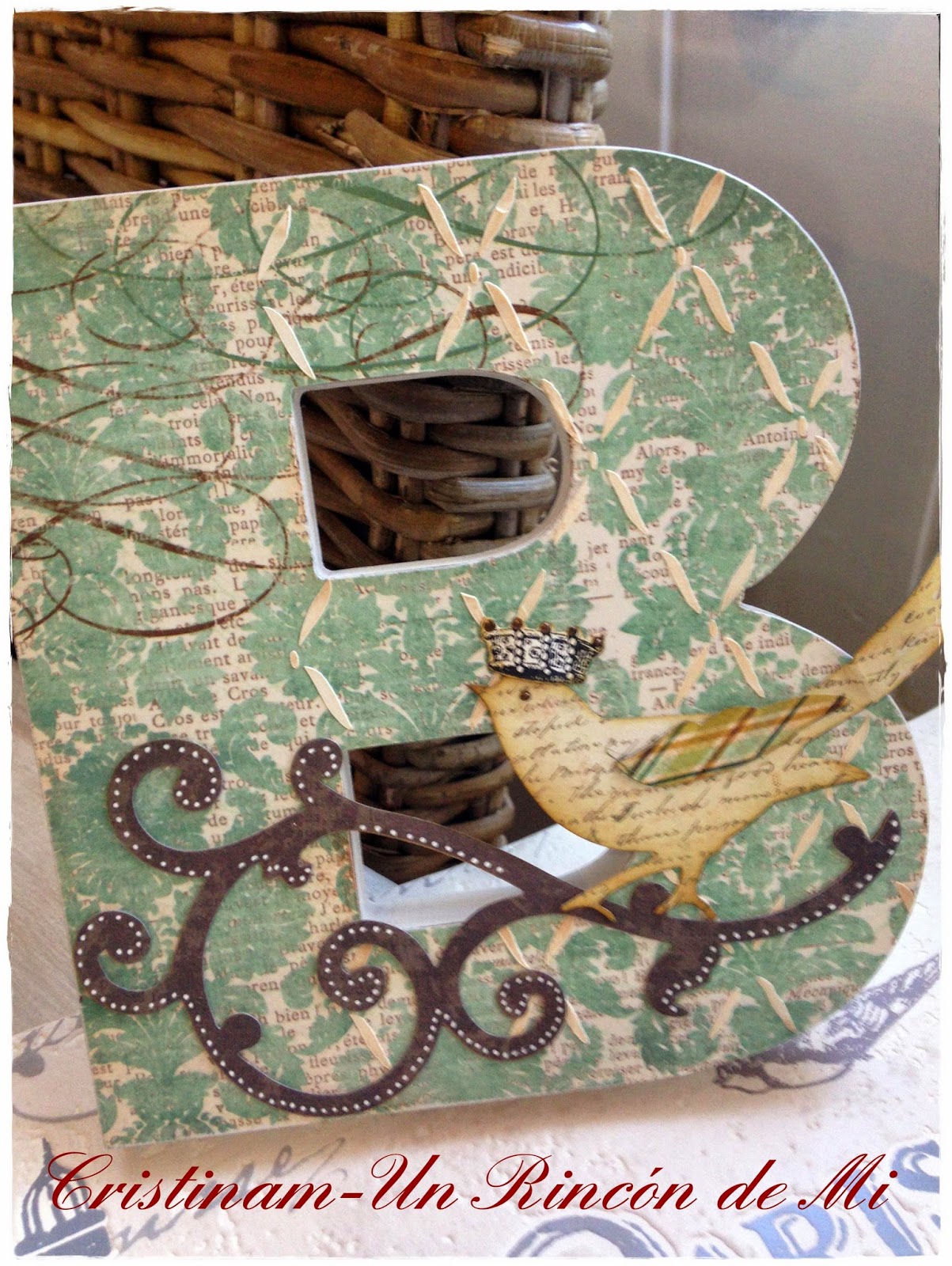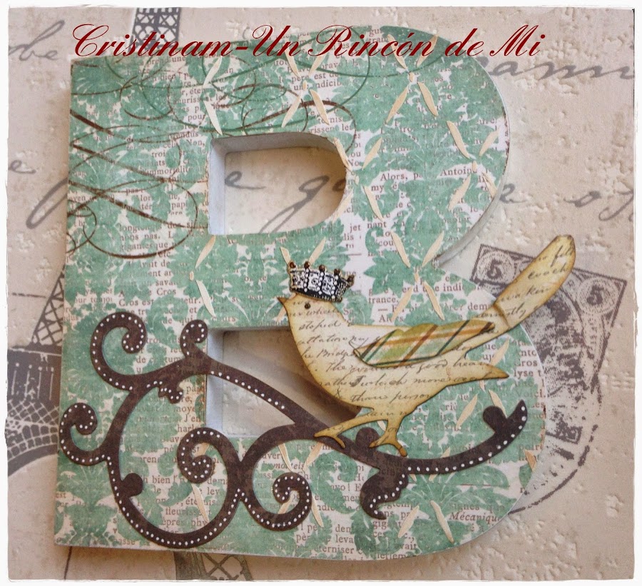 La letra es comprada... y he puesto es un papel Scrap con Mod Podge,, que es un pegamento que me encanta para trabajar con él