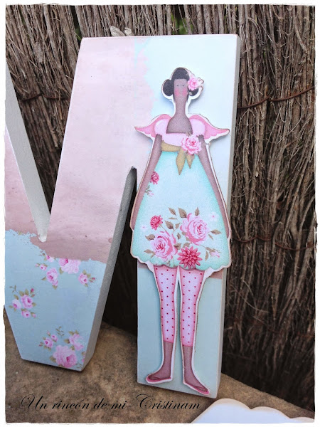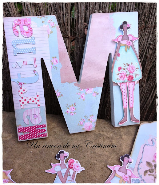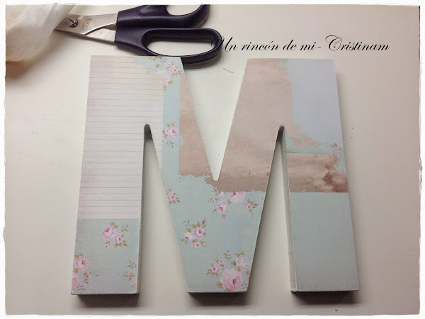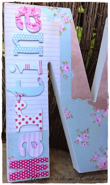 He utilizado una letra comprada en tonos claros y la he forrado con un papel Tilda precioso!!!