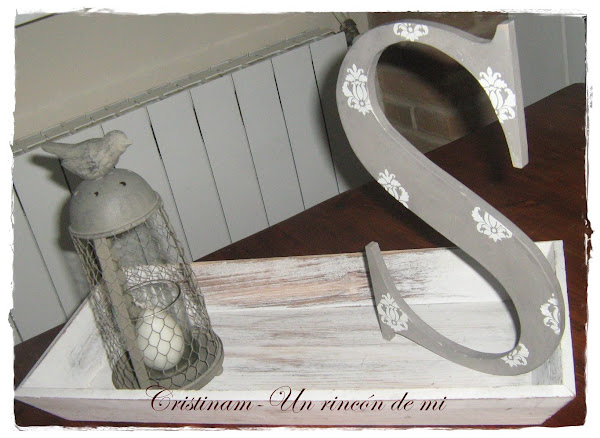 Vuelvo a la carga con una letra cortada por mi y decorada con pintura Chalk paint color French linen.