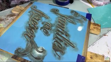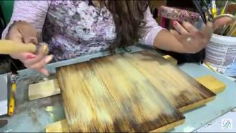 LETRERO EN MADERA CON ESTARCIDO