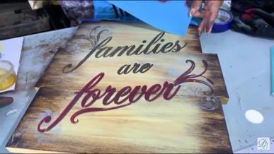 Este proyecto es sumamente sencillo pero con un gran mensaje, que muchas veces pasamos por alto, y habló de la familia, un gran regalo, con sus cosas buenas y no tan buenas, pero que al fin y al cabo "Siempre serán nuestra familia. Las Técnicas super faciles, sencillas y de verdad super relajante de realizar, el estarcido: El estarcido, técnica muy primitiva identificada más recientemente con el esténcil, es un tipo de decoración a partir de una plantilla, calco o "trepa" con un dibujo recortado o patrón, método que permite reproducir en serie la imagen representada, usualmente se hace de la mano de la técnica de brocha seca, o también con pasta para modelar, dando así una pequeña textura. Este proyecto es sobre madera pero igual lo podremos trabajar sobre otras superficies como tela, lata o metal y plástico.