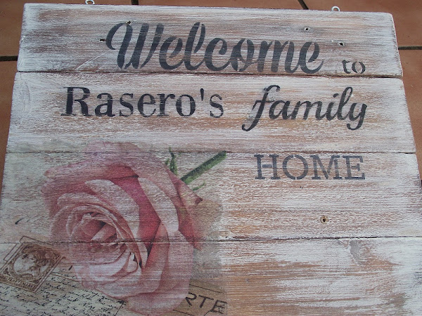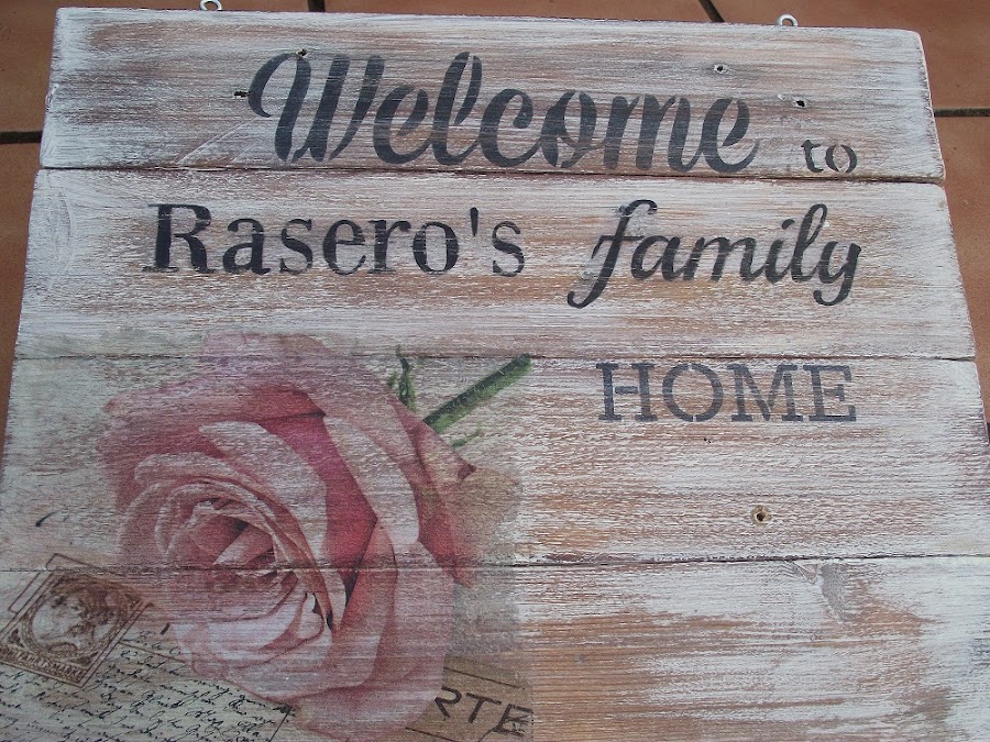 ¿Os acordáis de la cajita de bailarina que hice para mi sobrina Victoria? Pues la bailarina, que es la benjamina de la familia, ha hecho la primera comunión y su mamá, que es muuuuy valiente, lo ha querido celebrar en casa, porque viven en el campo. Así es que para contribuir a la decoración del jardín hice este letrero que os enseño, con un mini texto en inglés y el primer apellido de la familia (lo de poner sólo un apellido es una costumbre muy anglosajona, por eso estuve pensando si poner los dos apellidos, pero como me parecía muy antiestético y era para una fiesta...así lo dejé ).