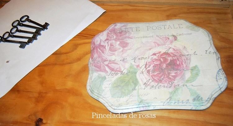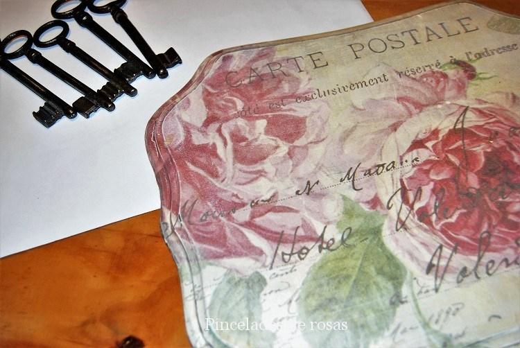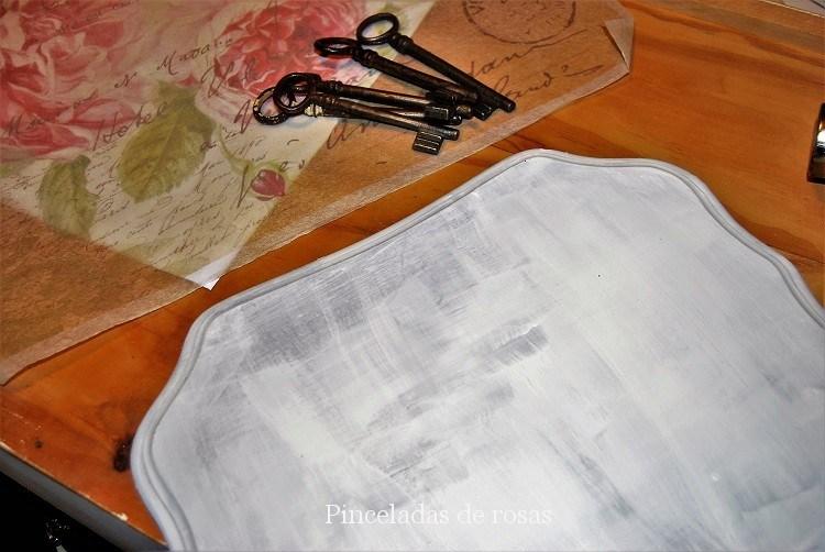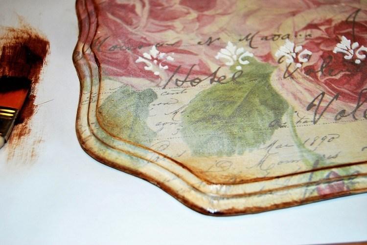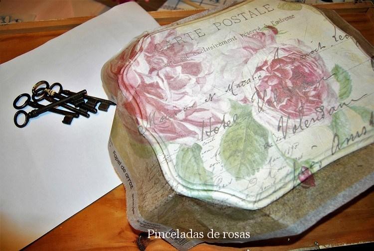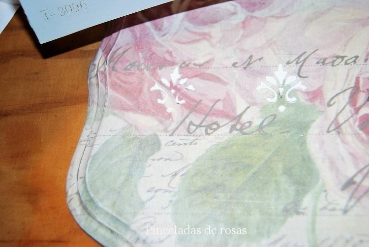 Recortamos el papel sobrante de la tablilla y barnizamos para proteger el papel decorado