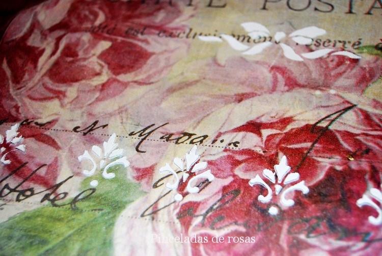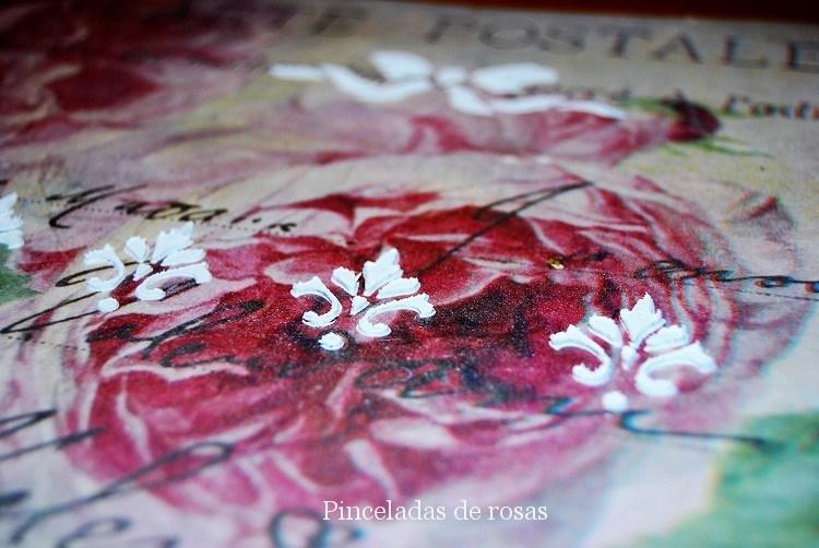 Pegamos el papel de arroz sobre la tablilla ya pintada y seca
