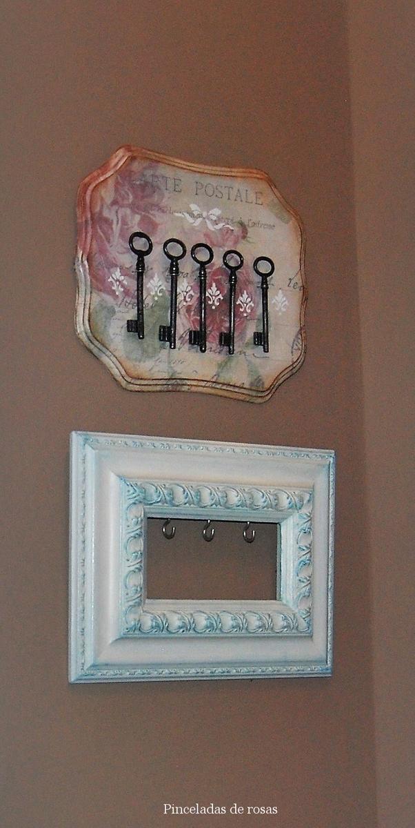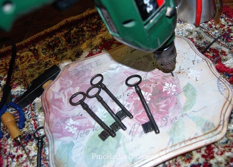 Organice para sujetar las llaves… proyecte diferentes maneras de sujetar o atar las llaves a la madera, pegamento dos componentes… cuerdas… cintas… ganchos… creo que al final escogí por la mas complicada.