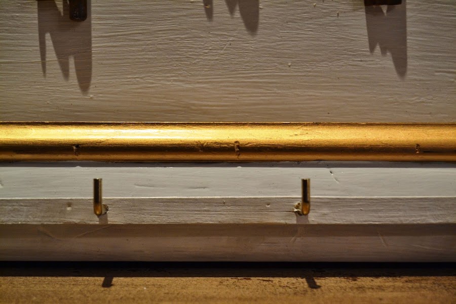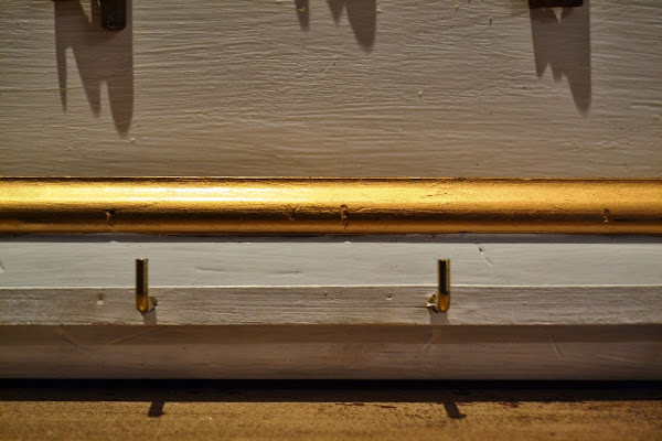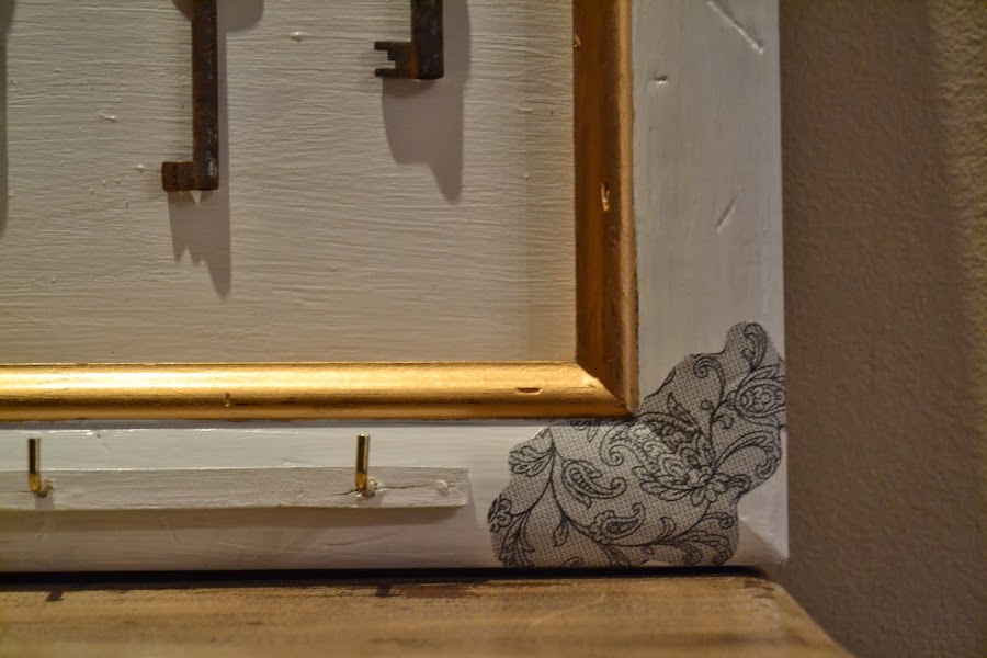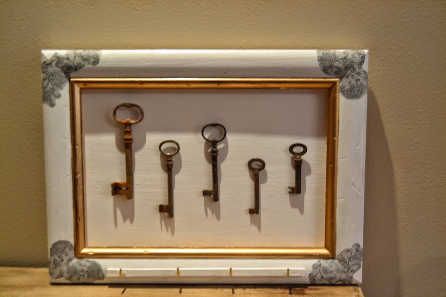 Y para colgar las llaves, en la parte inferior hemos clavado un listón pequeño con unos tornillos dorados en ele, y ahí es donde irán colgadas las llaves.