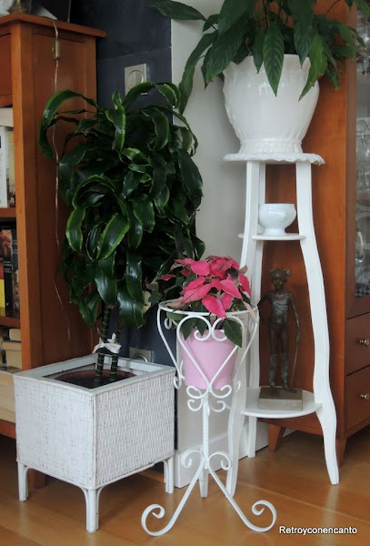 Ahora que nos fijamos, en este rincón tan botánico hemos reunido portamacetas de tres materiales diferentes: mimbre, hierro y madera.. ¿Alguien da más?