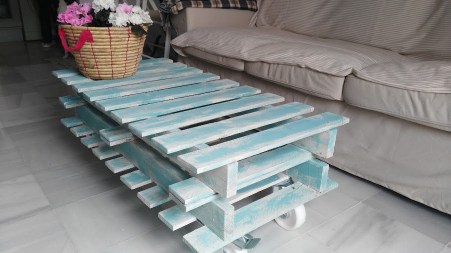 4. Mesa de palets efecto envejecido: Esta mesa ha sido de los últimos DIY que hemos hecho. Mi tía se acababa de mudar y necesitaba una mesa de centro para su nueva casa. ¿El resultado? un pop de color en un salón de decoración clásica.