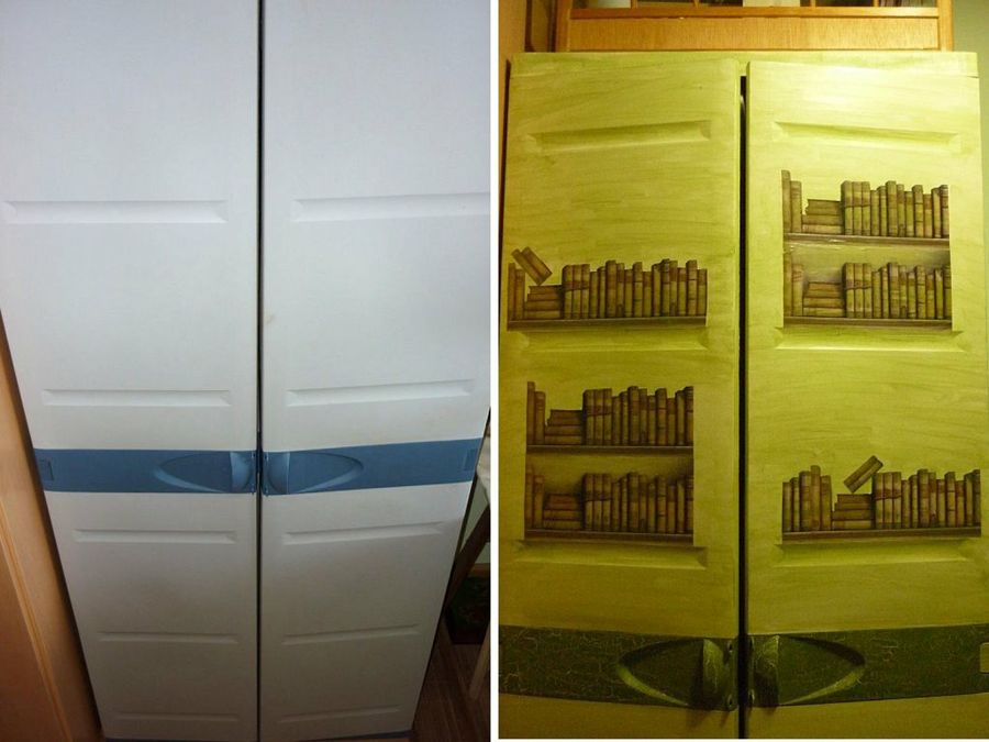 ¡Quién diría que esta visión tan refinada y elegante corresponde al armario de las escobas! Nuestra amiga Turutu ha hecho una labor decorativa ejemplar con algo tan prosaico como un armario de resina, el tipo de mueble auxiliar que suele instalarse en garajes y trasteros.
