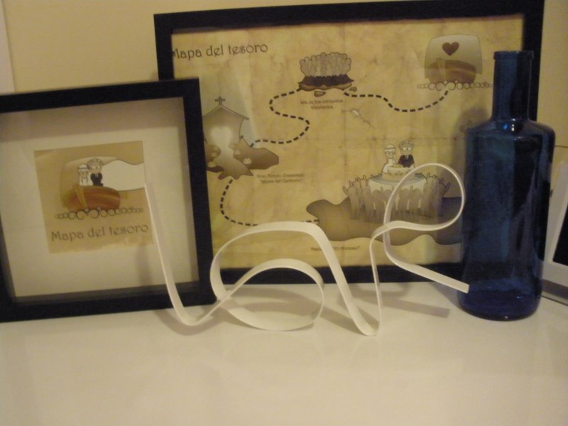 En la parte trasera podemos ver las invitaciones de boda enmarcadas, una muy buena idea para decorar y tenerlas presente a diario.