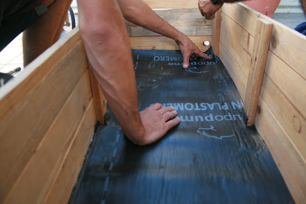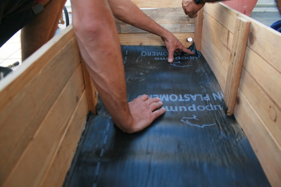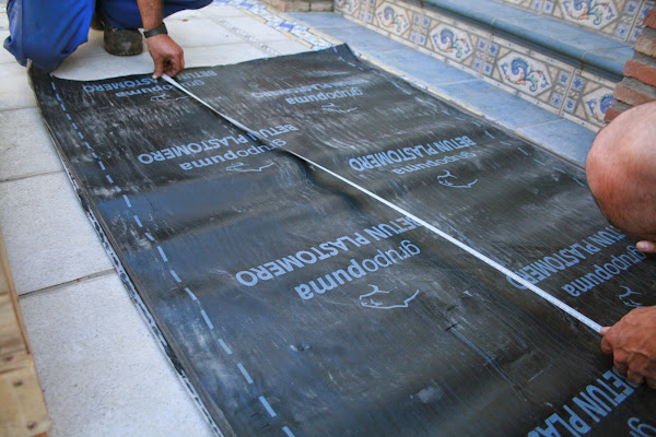 Cortaremos la tela asfáltica a la medida de cada cara interior y comenzaremos a soldarla a las caras.