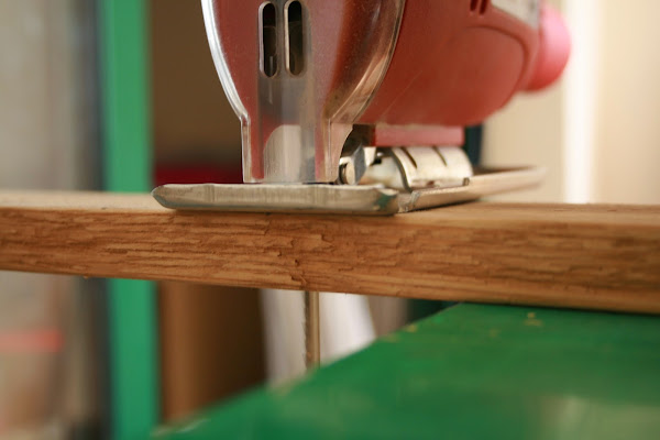 Una vez colocadas las patas, vamos a darle un poco de forma y hacer que luzca diferente. Marcaremos un ángulo en las dos caras principales y cortaremos con la sierra de calar.