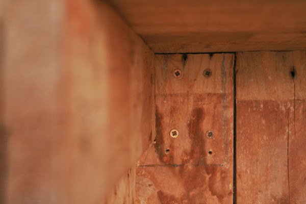 Para ello medimos el ancho del taco y marcaremos en el interior de la caja, sobre la tapa inferior, las dimensiones de este. Una vez marcado, procederemos a realizar las guías para los tornillos y atornillaremos. Os recomiendo que para este caso uséis tornillos de 4 mm de ancho por la mitad del ancho del taco como mínimo. Yo usé tornillos de madera de 4mmx60mm. Estos tacos son de 100mm.