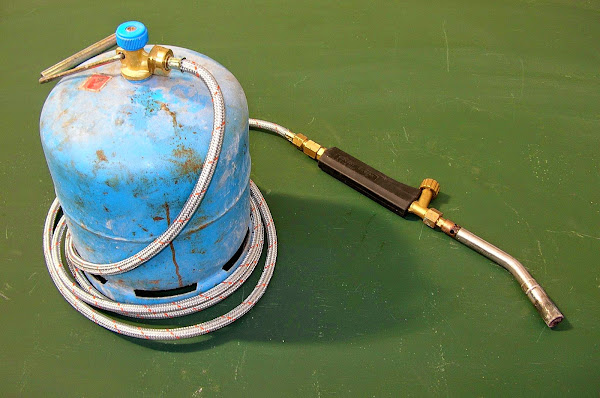 Para este trabajo vamos a usar una herramienta conocida como "Soplete de fontanero". Esta herramienta se compone de una bombona, manguera y un quemador. Es muy sencilla de usar, pero se debe usar con mucha precaución ya que estos quemadores funcionan con gases inflamables como butano o propano.