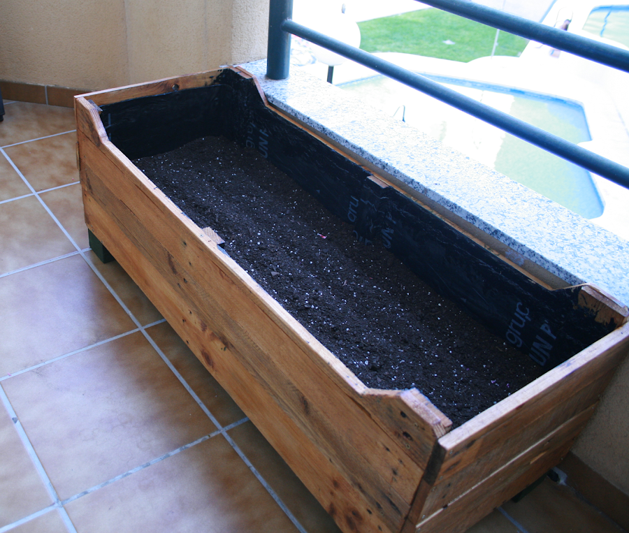 Os recomiendo que deis dos capas de tinte y otras dos de barniz. Una vez seco, rellenamos con tierra o sustrato el macetero.? Nos valdrá de soporte y alimento a nuestras futuras plantas. El sustrato lo podéis conseguir en cualquier vivero. Os desaconsejo que lo hagáis en los chinos de la esquina ya que no son sustratos de calidad en la mayoría de los casos y de paso fomentamos la economía de la pequeña y mediana empresa nacional. Además, en un vivero podrán asesoraros y podrán ayudarnos a decidir así el tipo de planta según gustos y necesidades.