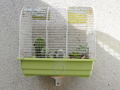 Lo vi hacer a Iñigo Segurola en el programa Bricomania y me gustó la idea, una forma de reutilizar una jaula de mascotas y hacer con ella un bonito y original macetero.