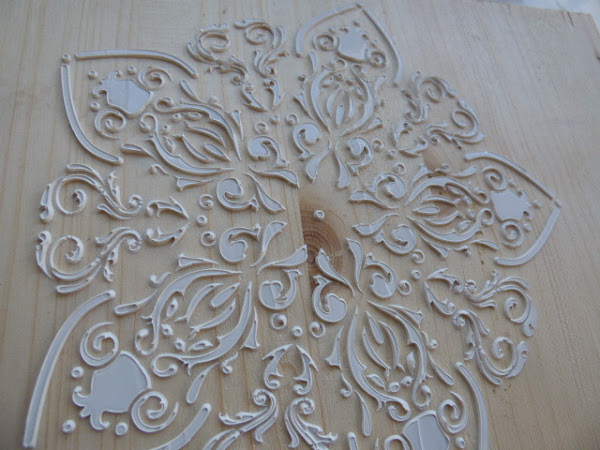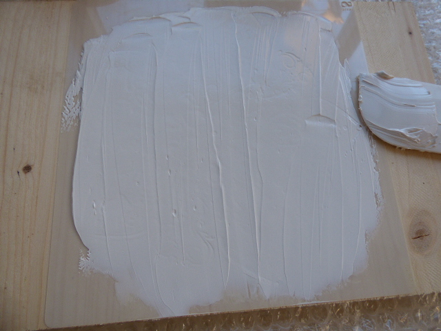 Una buena capa de pasta de relieve......yo la extiendo con la paletina de silicona, de las que usamos en la cocina.....