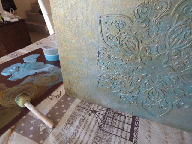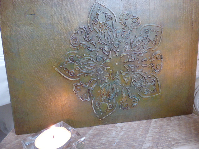 Nada del otro mundo, un cuadrito con relieve con una plantilla nueva al que he querido darle un aspecto metalizado...