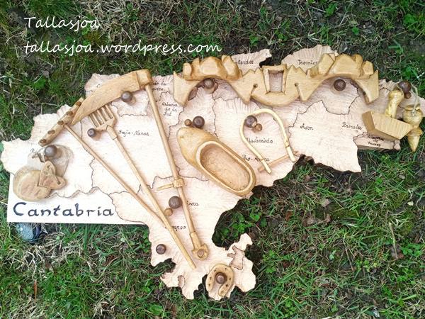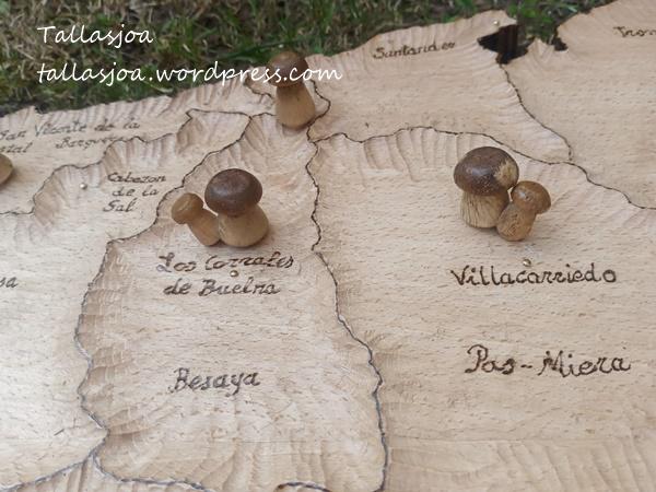 Los nombres de las comarcas están hechos con pirografía y los acabados son en lasur ya que se va a colocar en el exterior
