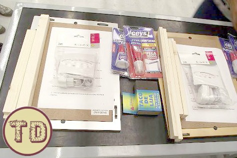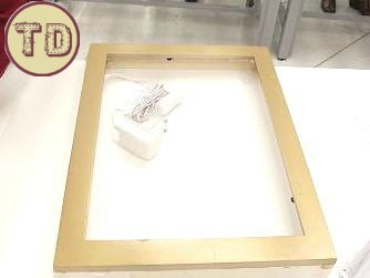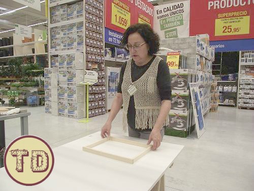 El marco consta de dos partes: la delantera es un marco de fotografías, al que quitamos su trasera y el cristal; la parte de atrás está formada por cuatro tablas pegadas y unidas a su vez al marco de fotos.Estos son los materiales necesarios: