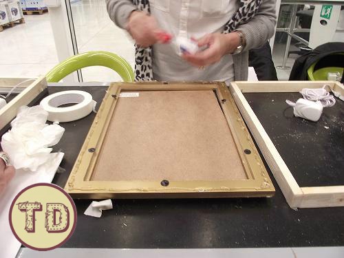 Utilizamos una tira de luces leds de 1 metro a la que cortamos un trocito, porque era excesivamente larga para este marco. Se adhiere perfectamente, siempre con cuidado de no doblar en ángulo recto para no deteriorar los cables.