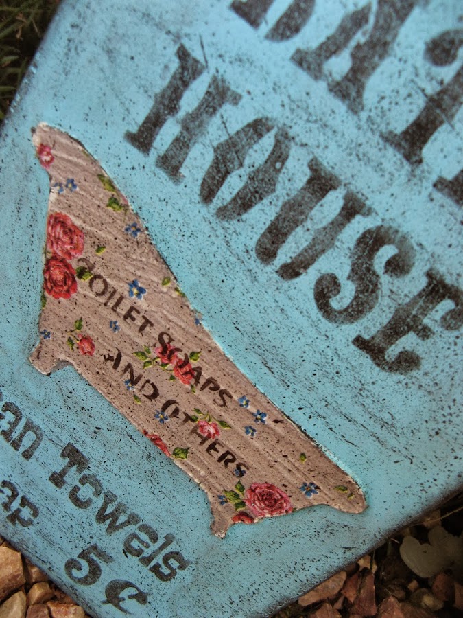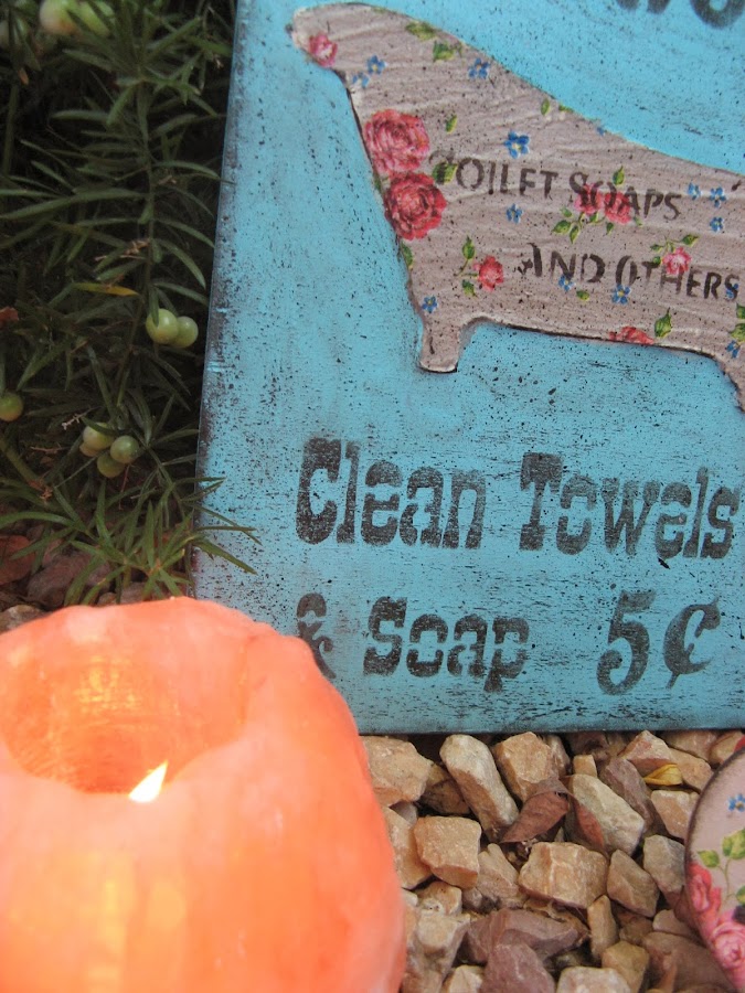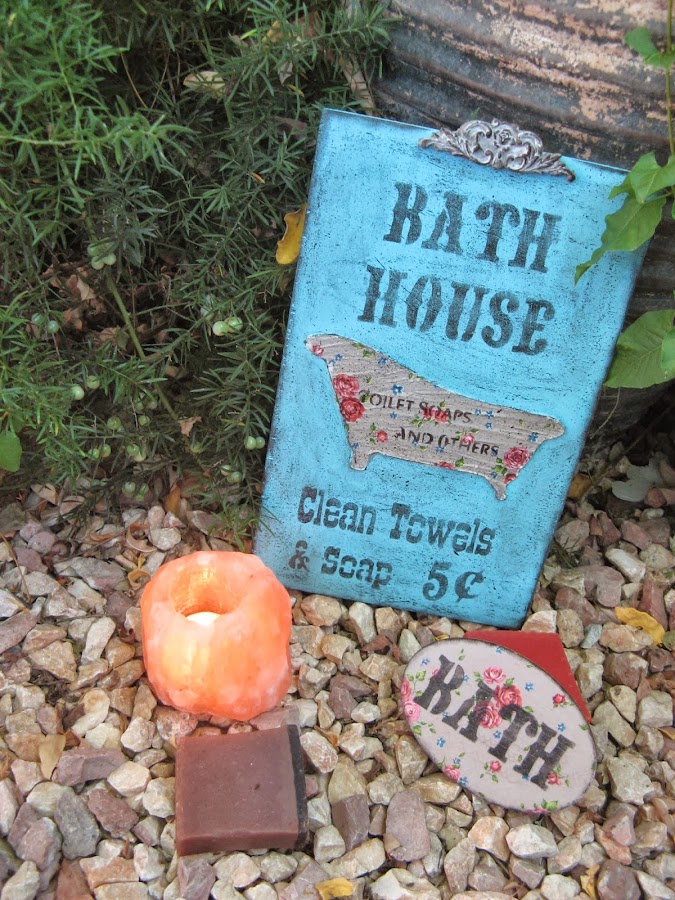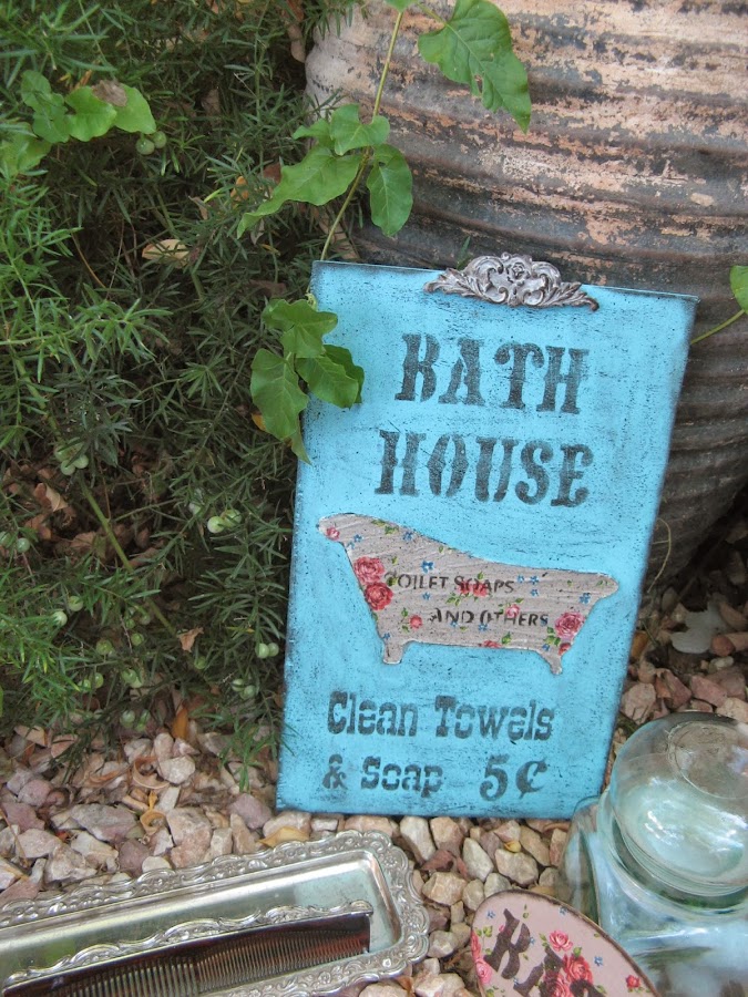Con ella se ha decorado la bañera hecha en relieve con stencil y la chapita que va a juego con el cuadro