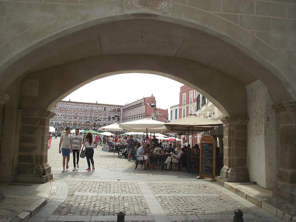 A la plaza se accede por el Arco del Peso y desde aquí ya se puede ver el ambiente tan animado que hay los días de mercadillo: