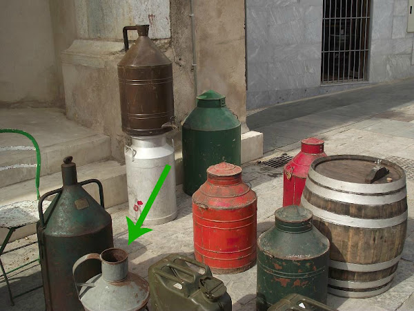 Cántaras (o zafras, que también se llaman) de aceite en diversos tamaños y con sus pinturas originales. También había cántaras de leche, que son muy parecidas pero no exactamente iguales (la que está en la parte inferior de la foto):