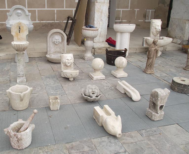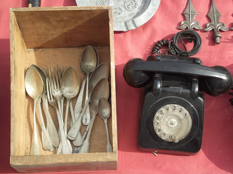 Pilas y fuentes de mármol, cubiertos de alpaca, teléfonos de baquelita, restos de vajillas y cristalerías antiguas:
