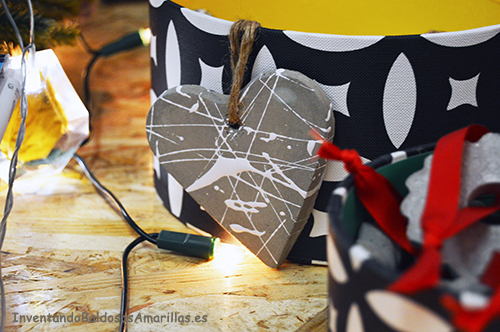 En Pegata les gusto lo original. No se resisten a crear unas Navidades diferentes y por eso sus adornos huyen de los colores habituales. Nada de brillantina ni espumillón. Aquí todo está hecho a mano con cariño y buscando que nuestras casas sean únicas. El cemento es la base para hacer unos adornos de diferentes formas y pintados en blanco.