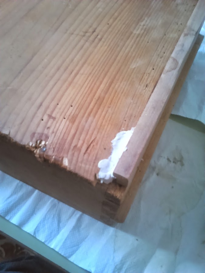 Pero hubo mucho trabajo aqui se tuvo que poner una chuleta con un liston para mantener la función de cajonera y pata.