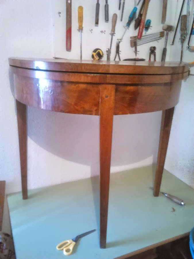 Asi está a medio barnizar. Ahora os cuento lo que tuve que hacer. Pero primero os cuento la historia y es que es de la bisabuela de la mujer que me encargo la restauración. Digno de realizar el trabajo. Ahora bien ya comienzo el tutorial como siempre a revisar el estado general del mueble.