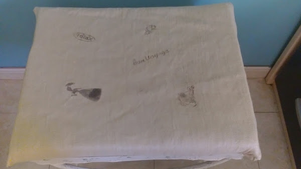9º Aquí ya con la parte guai, creativa. Para estampar el cojín, utilicé dos técnicas: la transferencia con barniz, que os puedo asegurar que es súper fácil y en un minuta la tienes. Para no extenderme, podéis ver la técnica en en este blog donde está muy bien explicado, el taller de lo antiguo.